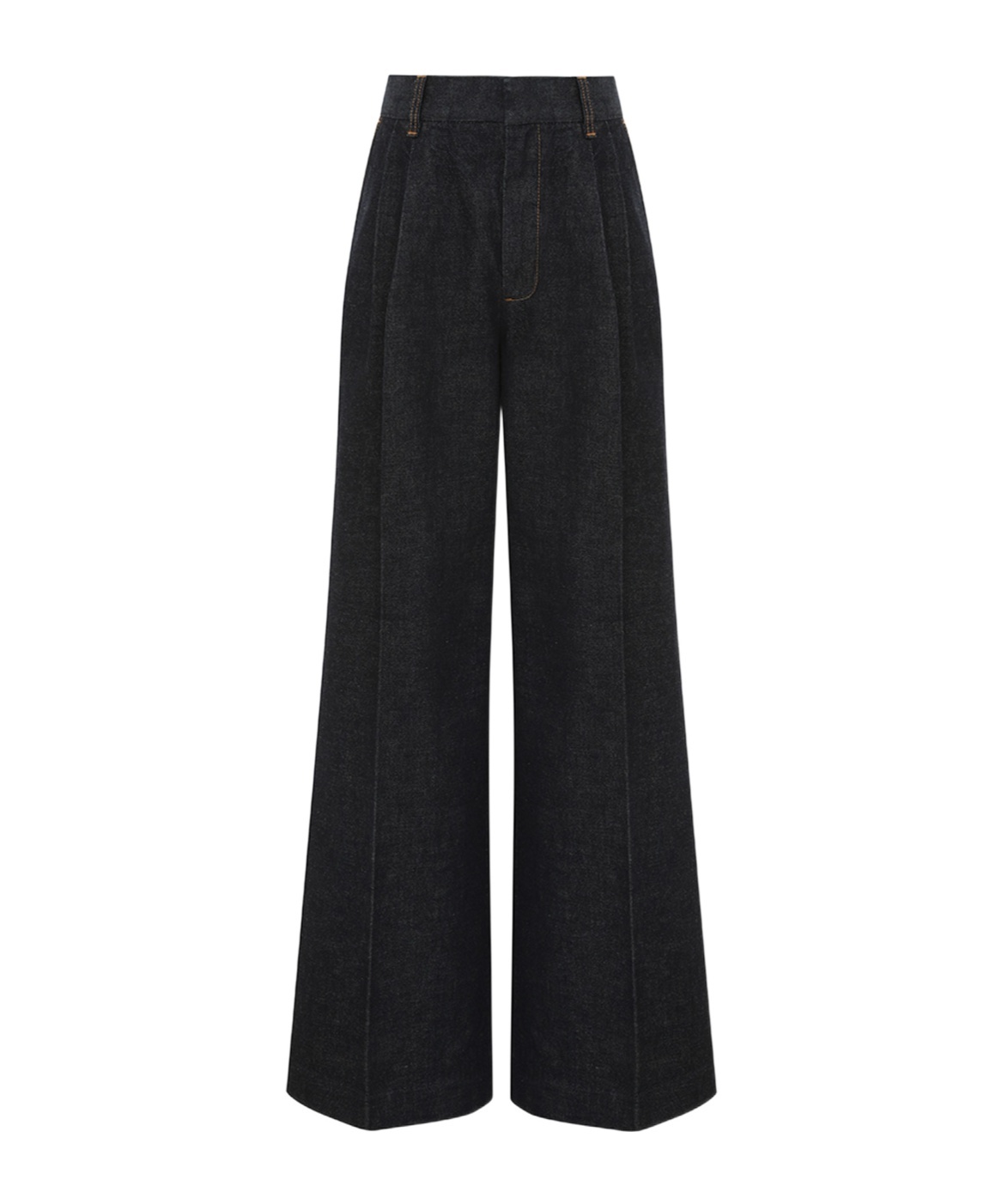 'Illustration Denim' cotton denim jeans with hook and button zip closure, pockets, wide leg with double pence. Composition: 75% cotton 25% viscose Size & Fit: true to size fit