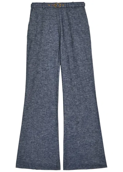 ZIMMERMANN Hypnotic Belted Linen-blend Trousers In Blue