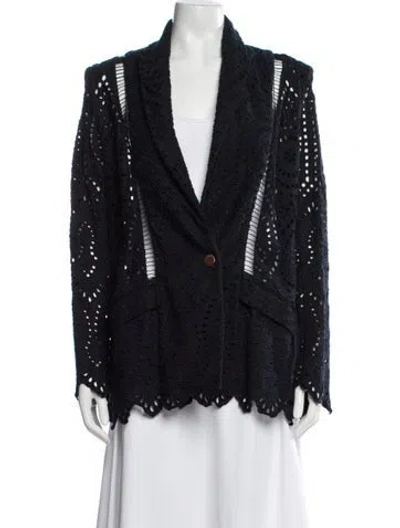 Zimmermann Jacket Blue Lace Pattern Scalloped Accent & Shawl Collar Flap Pockets & Button Closure Designer size 2. Fit: Jackets by Zimmermann typically fit true to size. | Zimmermann Lace Pattern Jacket in Blue, Women's M