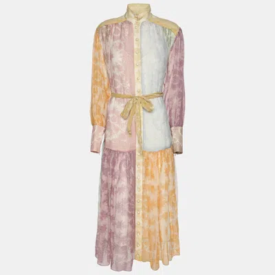 Pre-owned Multicolor Crinkle Silk Georgette Dancer Lantern Midi Dress Xs