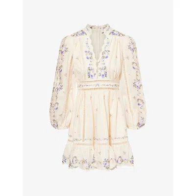 ZIMMERMANN Womens Cream Purple Rose Patience Plunge Linen Mini Dress In Multi