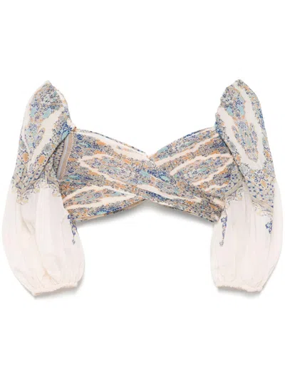 beige rear zip fastening paisley print crossover neck balloon sleeves