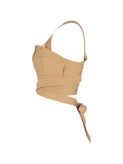 beige wrap effect crossed straps knot detail hook-and-eye closure cotton Condition: EXCELLENT. This previously owned item is in near-perfect condition with no signs of damage or use.