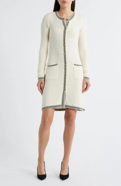 ZOE AND CLAIRE Long Sleeve Structured Midi Sweater Dress In Neutral