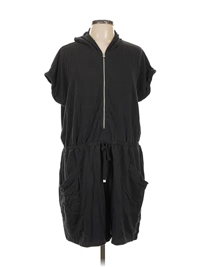 Zuda Romper, Size: 1X. Item Details: Black, Solid Pattern, Crew Neck, Straight Leg, Short Sleeve, Zippers, Women's Dresses, Rayon/Cotton/Spandex