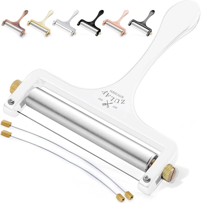 ZULAY KITCHEN Adjustable Hand Held Cheese Cutter With 2 Extra Wires In White
